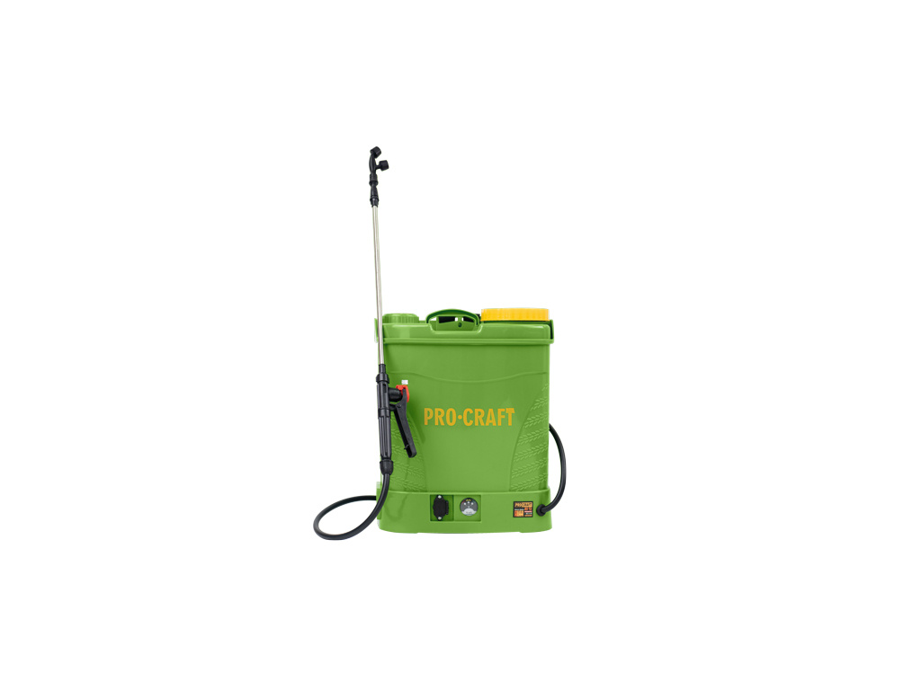 Aku postřikovač Procraft AS-12 je určený na postřik, rozprašování přípravků a prostředků, ošetřování rostlin a stromů, hubení škůdců a plevele, dezinfekci a čištění prostorů. Po vyprázdnění nádoby dojde k automatickému vypnutí. Spolehlivé čerpadlo s nastavitelným průtokem až 3,1 l/min a tlakem až 5,5 bar a s integrovaným kontrolním barometrem. Součástí dodávky je nabíječka a baterie umístěná bezpečně uvnitř stroje v odolném obalu proti vlhkosti. Doba provozu až 7h v závislosti na intenzitě práce a pracovním tlaku. Postřikovač má teleskopickou kovovou trubicí a je vyroben z kvalitních materiálů, které pod tlakem nepraskají. Je vybaven gumovým těsněním, které má větší odolnost než standardně dodávané silikonové těsnění. V balení jsou náhradní vyměnitelné trysky, trysky na různý roztřik, praktický zádový popruh, těsnící kroužky a komfortní spouštěcí pistole. Nádoba postřikovače je průsvitná, takže při práci vidíte objem kapaliny. Balení karton.