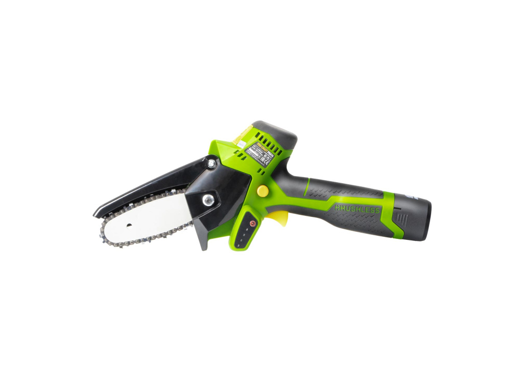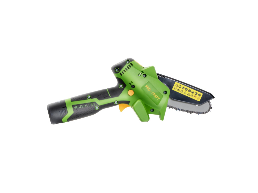 AKU jednoruční řetězová pila PKA16 je díky svým kompaktním rozměrům užitečným pomocníkem při prořezávání stromů a keřů při práci v omezeném prostoru. Její provoz je v porovnání s většími stroji tichý. Je vybavena bezpečnostním krytem pilového řetězu. Stroj je dodávaný včetně vodící lišty a pilového řetězu v kartonu s montážním klíčem, nádobou na mazací olej a akumulátorem 2Ah, 16V a nabíječkou.