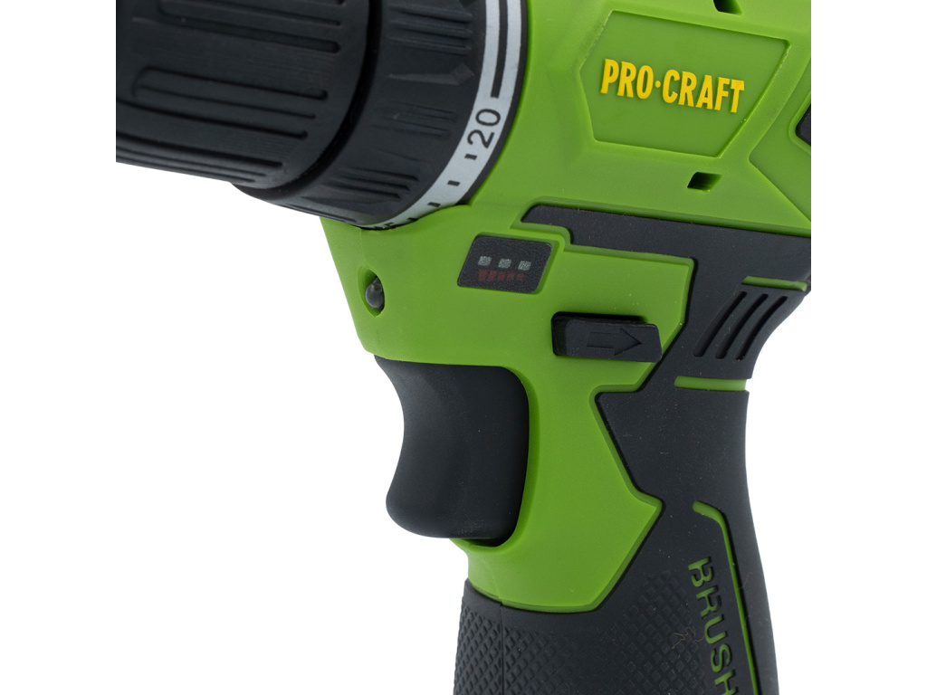 AKU vrtací šroubovák Procraft PA12BL je praktický pomocník pro použití všude tam, kde při vrtání a šroubování nechcete být omezováni přívodním kabelem. Šroubovák s možností změny směru otáček pravý/levý chod a utahováním momentem až 30Nm je vhodný ke šroubování vrutů, matic a šroubů s použitím 1/4" nástavců - bitů. Možnost nastavení utahovacího momentu ve 20 stupních. Rychloupínací sklíčidlo umožňuje upnutí vrtáků a stopkových nástrojů do průměru 10mm. Šroubování na 1. a vrtání na 2. rychlostní stupeň lze provádět s plynulou regulací otáček. Stroj je vybaven integrovaným LED osvětlením pracovní plochy s funkcí dosvitu. Bezuhlíkový motor. Vyšší výkon – méně tření, méně ztrát → více energie jde přímo do pohybu, nářadí pracuje rychleji a efektivněji.Součástí dodávky jsou 1 akumulátor 12V 2Ah, nabíječka a transportní plastový kufr.