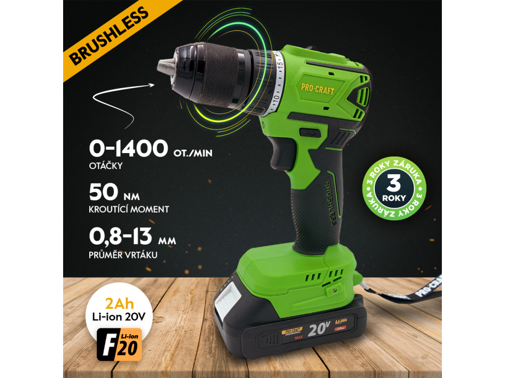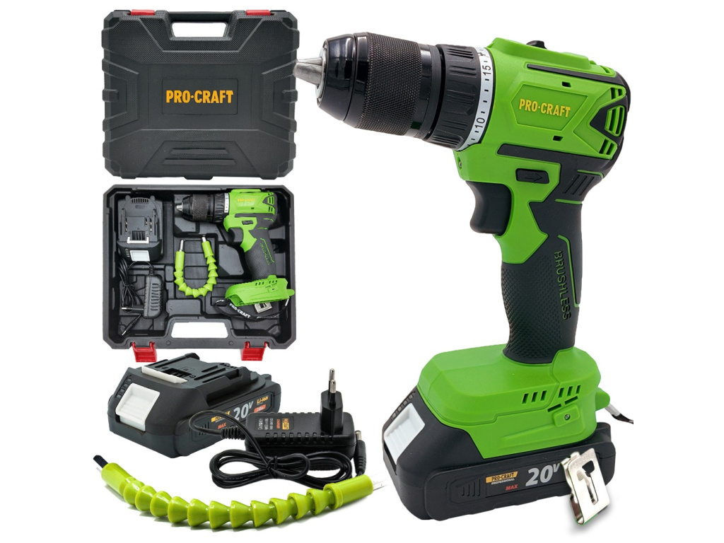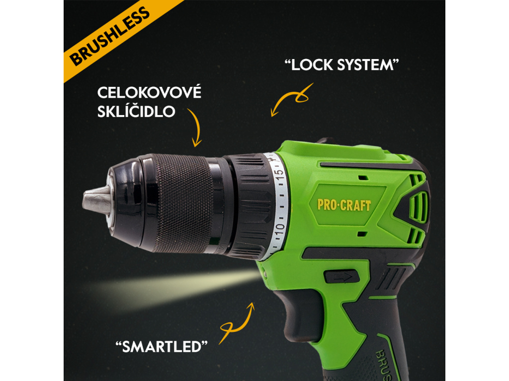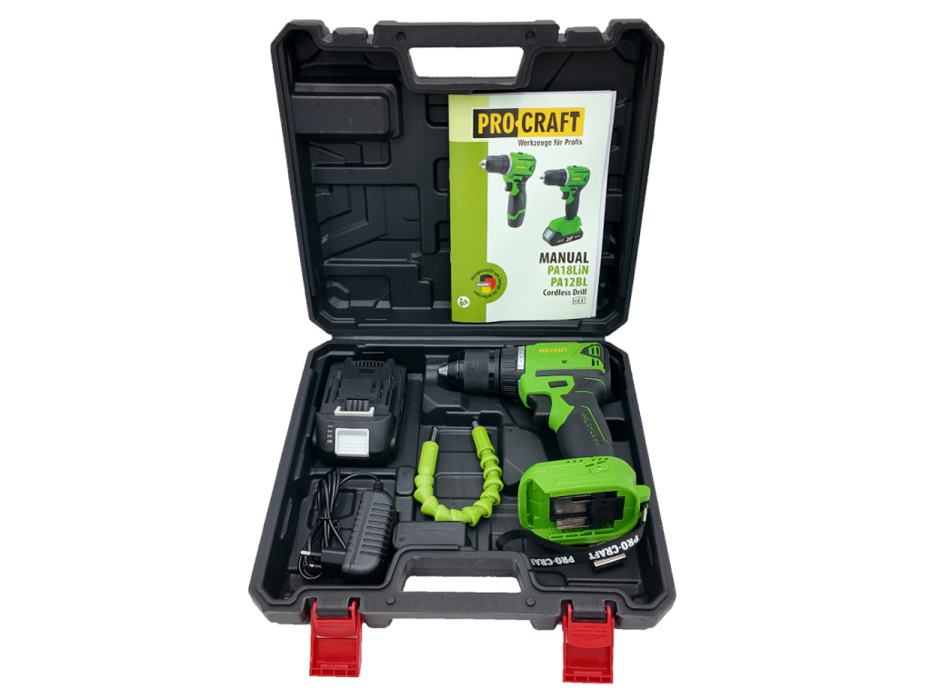 Aku šroubovák Procraft PA18LiN je poloprofesionální praktický pomocník pro použití všude tam, kde při vrtání a šroubování nechcete být omezováni přívodním kabelem. Šroubovák s možností změny směru otáček pravý/levý chod a utahováním momentem až 50Nm je vhodný ke šroubování vrutů, matic a šroubů s použitím 1/4» nástavců - bitů. Možnost nastavení utahovacího momentu ve 20 stupních. Rychloupínací sklíčidlo umožňuje upnutí vrtáků a stopkových nástrojů do průměru 13mm. Šroubování na 1. a vrtání na 2. rychlostní stupeň lze provádět s plynulou regulací otáček. Pro zvýšení pracovního komfortu a stability je stroj vybaven přídavnou rukojetí a integrovaným LED osvětlením pracovní plochy s funkcí dosvitu. Součástí dodávky je transportní plastový kufr, baterie 20V 2Ah, nabíječka, ohebná hřídel.