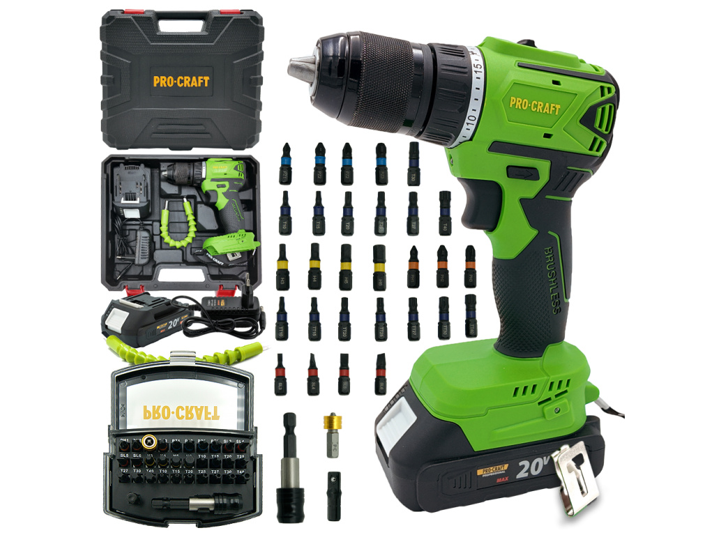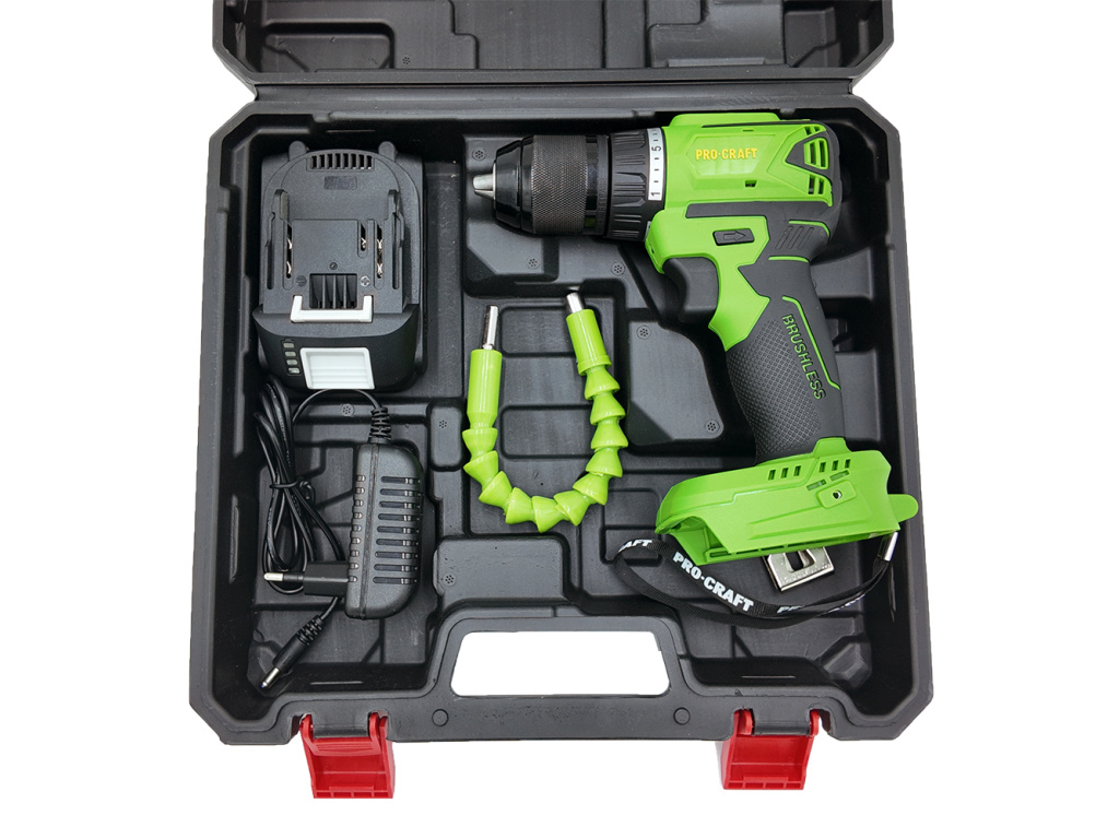 Aku vrtací šroubovák Procraft PA18LiN je praktickým pomocníkem všude tam, kde nechcete být při práci omezováni napájecím kabelem. Stroj je ideální pro vrtání, šroubování šroubů a vrutů, šroubování matic pomocí bitů a 1/4“ nástrčných hlavic. Díky použití moderního a výkonného bezkartáčového (brushless) motoru nabízí vrtačka/šroubovák točivý moment až 50 Nm, který lze regulovat ve 20+1 stupních. Výrazně slyšitelné přeskakování při dosažení nastaveného utahovacího momentu. Mechanická dvourychlostní převodovka umožňuje zvolit správný rozsah otáček v závislosti na prováděné práci: 1 - šroubování; 2 - vrtání. Rychloupínací sklíčidlo umožňuje použití pracovních nástrojů s průměrem 0,8 - 13 mm. Pro usnadnění práce v tmavých místnostech je přístroj vybaven LED osvětlením. Vrtačka/šroubovák PA18LiN se dodává v odolném kufříku spolu s nabíječkou a Li-Ion akumulátorem s kapacitou 2 Ah. Kromě toho je součástí dodávky ohebná hřídel pro práci v těžko přístupných místech.