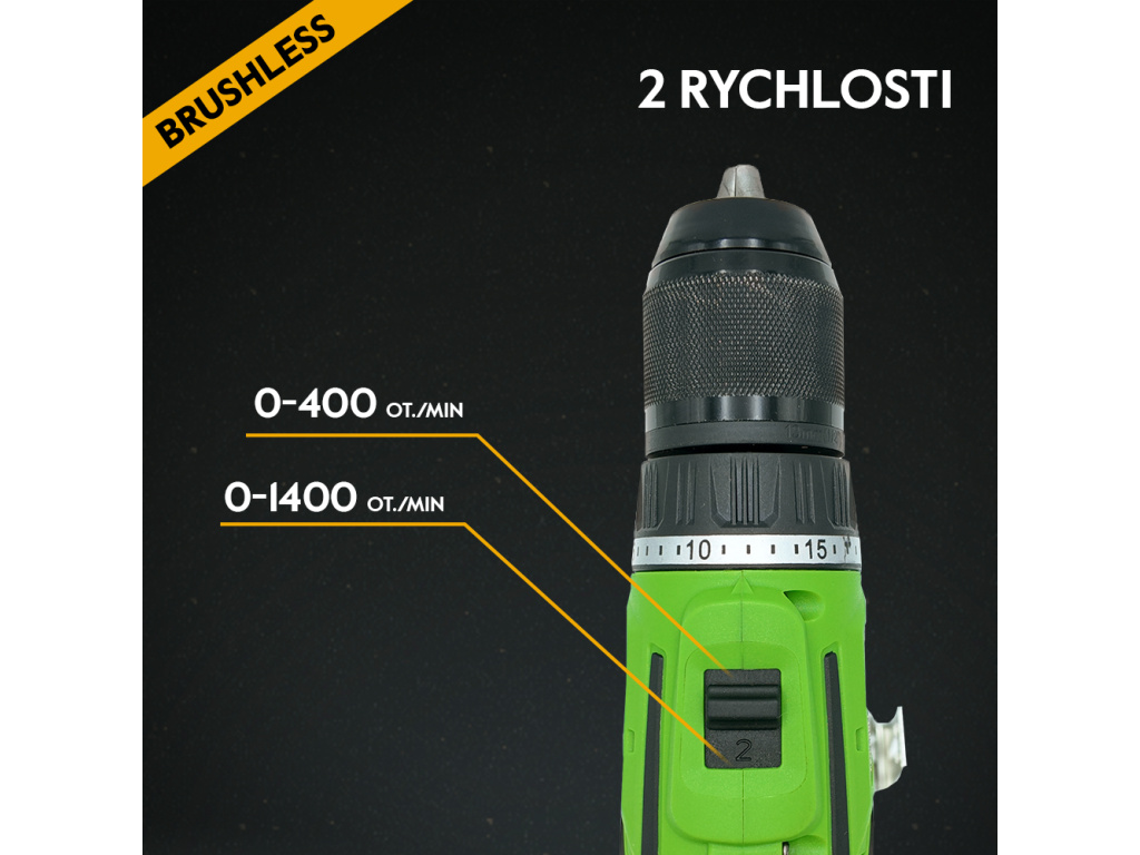 Pomocí převodovky můžete zvolit vysoké otáčky vhodné pro vrtání nebo nízké otáčky pro šroubování. Vyberte si jeden z 20 stupňů nastavení krouticího momentu, abyste předešli přetržení závitu nebo příliš hlubokému zaražení šroubu do materiálu. Pomocí tlačítka zapnutí/vypnutí můžete plynule regulovat otáčky, což výrazně usnadňuje používání nářadí.