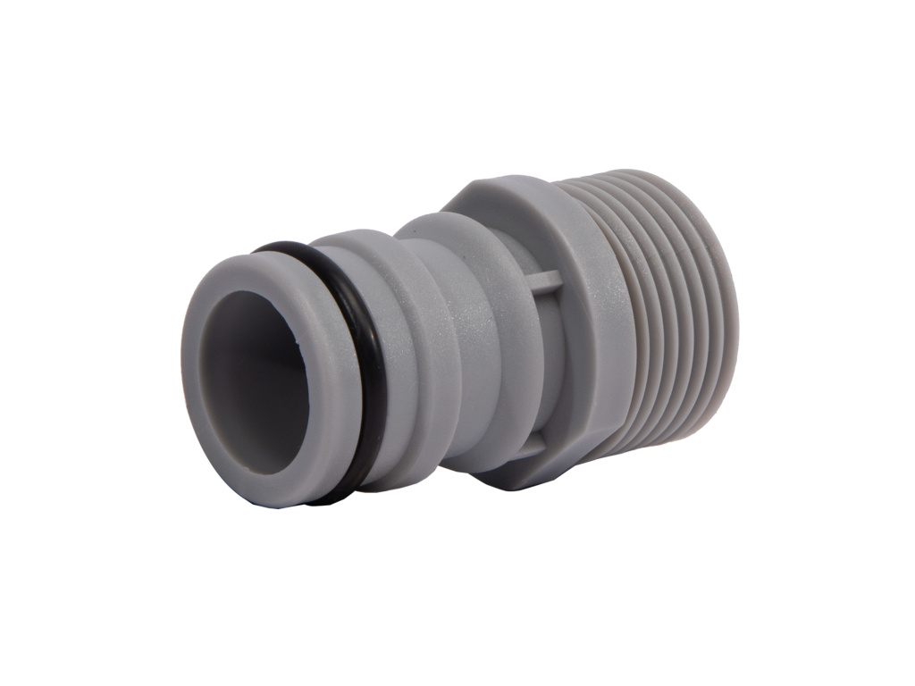 Adaptér s vnějším závitem 1” pro našroubování na kohoutek nebo čerpadlo. Druhá strana je vybavena rychlospojovací koncovkou 1” systému MAX-Flow pro snadné připojení hadice.