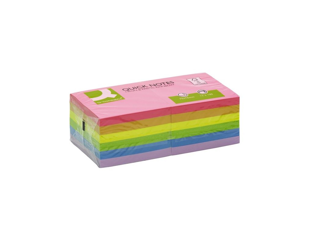 Bloček Q-Connect FSC, 76 x 76 mm,neon/pastel, 12ks