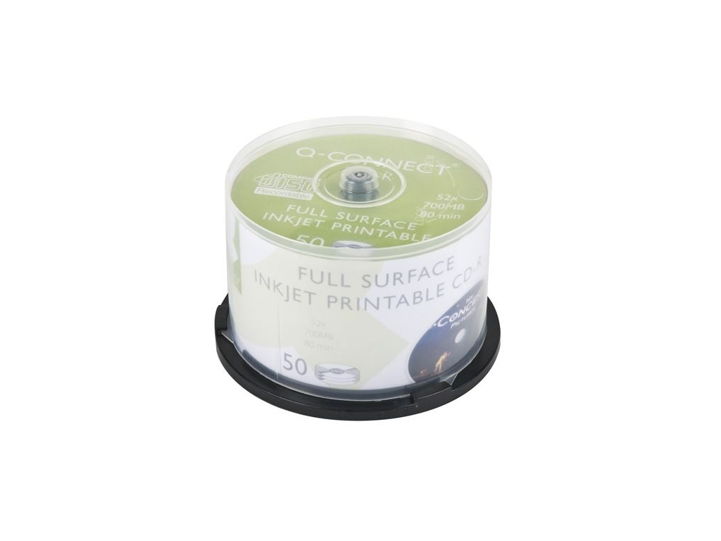 Výhodné balení potisknutelných CD-R značky Q-Connect s kapacitou 700 MB, vhodné pro vytváření hudebních CD či zálohování datŠpičková rychlost zápisu 52x a standardní kapacita 700 MB (80 min)Disky lze potisknout na vhodných inkoustových tiskárnách obrázky i textemTisková plocha: 23 - 118 mmPovrch je rychleschnoucíDlouhá archivační životnostVýborná kompatibilita s CD vypalovačkami a přehrávačiOdolné vůči UV zářeníBalení obsahuje 50 ksBarva povrchu: bílá