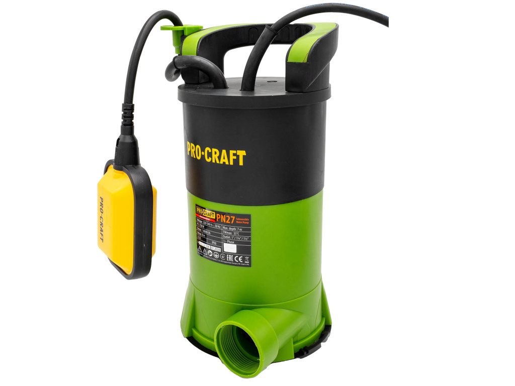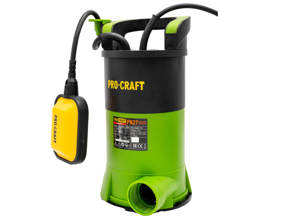 Ponorné nízké čerpadlo Procraft PN27 je určeno k odčerpání čisté i mírně znečištěné vody. Díky své konstrukci dokáže vysát vodu do 2 mm a je tím vhodné pro vyčerpávání bazénů, přečerpávání vody z nádrží a díky schopnosti nasát vodu při výšce hladiny pouhých 5 mm pro likvidaci domácích havárií, jako je vyteklá pračka, prasklé vodovodní potrubí, přeteklá vana apod. Silný motor s příkonem 750 W zaručí výkonnost 14000 litrů za hodinu do výšky až 8 m. Ponoření je možné až do 7 metrů. Plovákový spínač automaticky zapíná a vypíná čerpadlo v závislostí poklesu hladiny, ale jde jej také zaaretovat pomocí úchytu a požít pro vysátí do 2mm. Čerpadlo je vybavené tepelnou pojistkou přetížení, která vypne při zahřátí motoru na 36°C. Čerpadlo nesmí běžet bez vody déle než 2min. Součástí čerpadla je 10m dlouhý přívodní kabel s vidlicí, plastové koleno pro připojení různých průměrů odtokových hadic 25, 32, 38 mm. Balení karton.