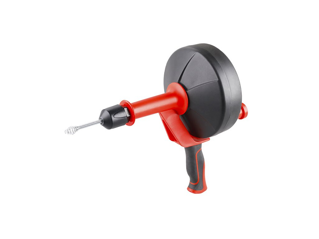 - pro práci - ručně vytáhnout spirálu do potřebné délky (max. 6 m), otáčení klikou nebo vrtačkou umožňuje lepší prostupnost čističe v potrubí, po praci očistit a zpět mechanicky zasunout zpět do plastového pouzdra
