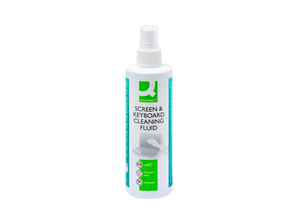 Čisticí kapalina pro obrazovky a klávesnice značky Q-ConnectAntistatická kapalina pomáhá snižovat tvorbu prachu a zajišťuje křišťálově čistou obrazovkuNa skleněné i plastové části počítačeVe sprejiOriginální balení obsahuje 20 ksObjem: 250 ml