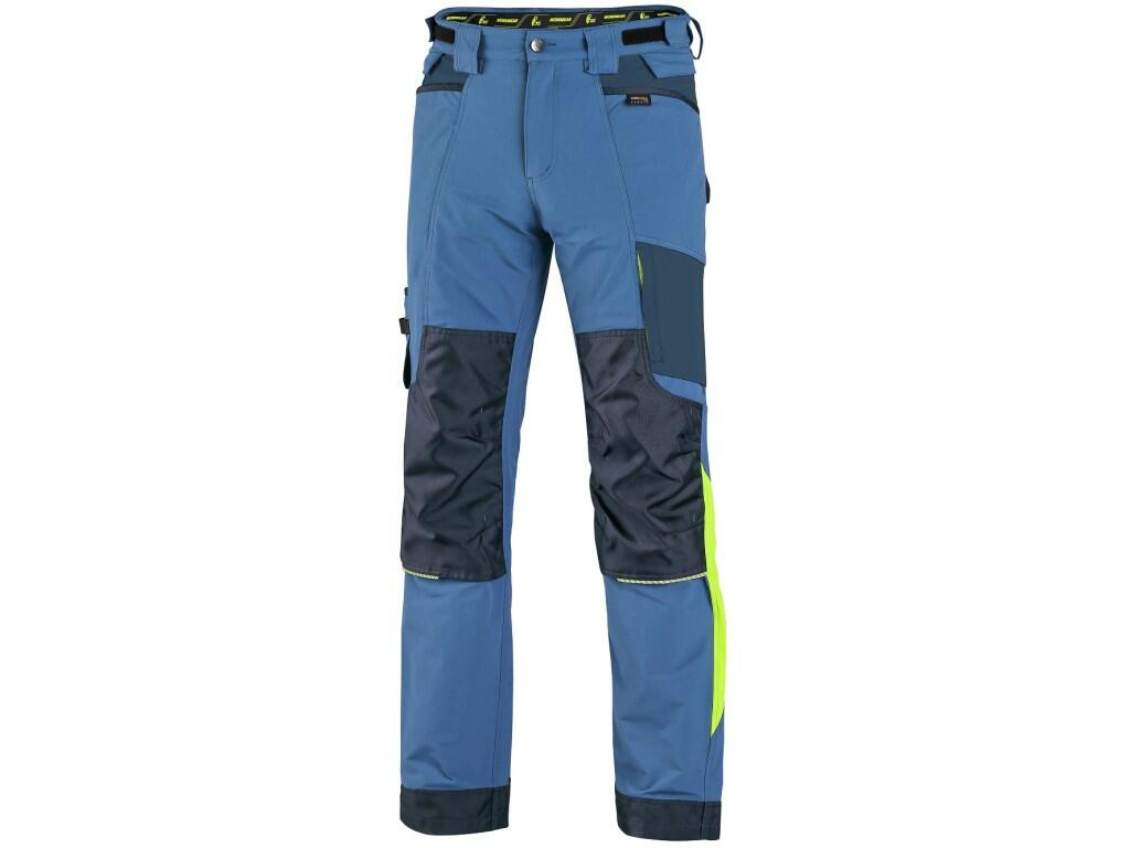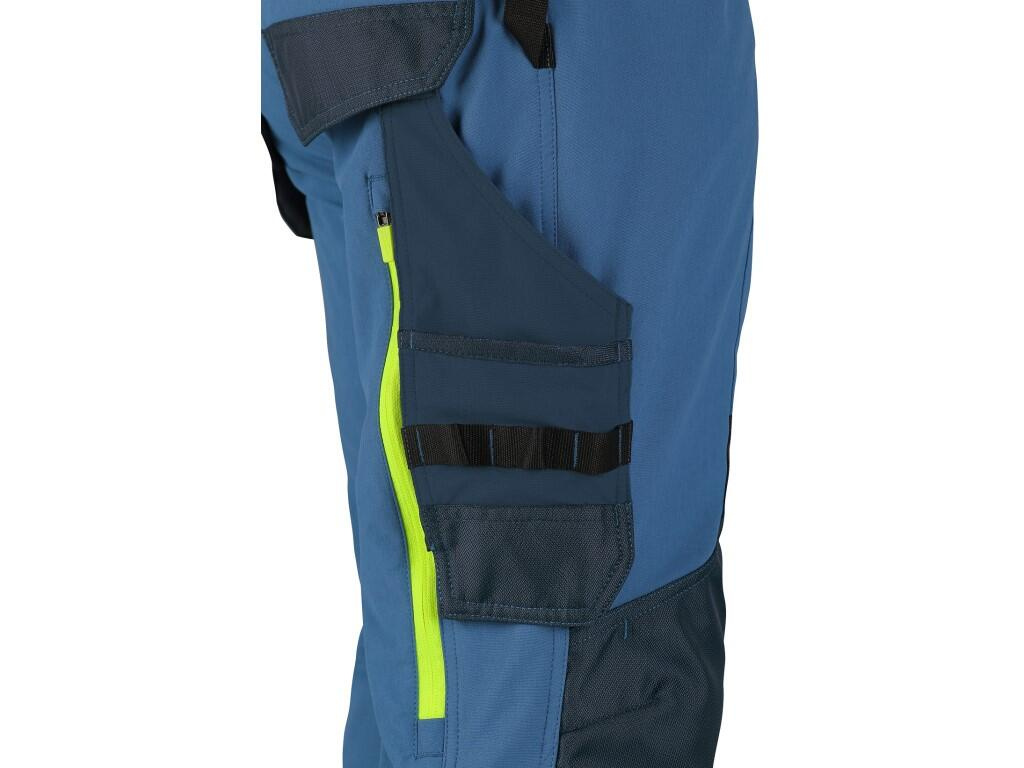 Pánské montérkové kalhoty s užším moderním střihem nohavic s kontrastními barevnými a reflexními doplňky. Konstrukce 4-way stretch umožňuje roztahování materiálu ve všech čtyřech směrech a tím i snadný a volný pohyb. Vysoké procento nylonu zaručuje schopnost rychlého schnutí. Vybavení kalhot: flexibilní pas s možností upravení velikosti a poutky na opasek, 2 přední kapsy, 2 odnímatelné kapsy na nářadí vyztuženy materiálem CORDURA®, zipová kapsa na stehně s odnímatelným pouzdrem na ID kartu, multifunkční boční kapsa, 2 zadní kapsy ve spodní části vyztuženy materiálem CORDURA®, zipová ventilace v zadní části stehen, kolena zesílena materiálem CORDURA® s možností vložení kolenních výztuh, spodní část nohavic vyztužena materiálem CORDURA®. Kalhoty jsou vybaveny EASY-PROLONG systémem, který umožňuje snadné prodloužení střihu na vyšší postavu uvolněním švu na nohavicích. Doporučené použití: strojírenství, stavebnictví, lehký průmysl, automobilový průmysl, logistika, skladování, spedice, autoservisy, údržba, montáže, zemědělství, zahrada, hobby a volný čas.