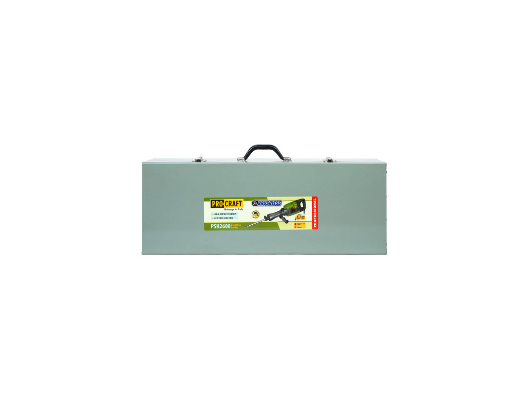 Bourací kladivo Procraft PSH2600 je určeno k práci se stavebními materiály jako jsou cihly, beton nebo kámen. Regulace příklepů umožňuje nastavení optimálních parametrů při práci s různými materiály. Síla úderu 50J a výkon až 1400 úderů za minutu usnadní většinu bouracích prací. Rukojeť s antivibračním odpružením a s protiskluzovým měkčeným povrchem umožňuje vysoký komfort a delší používání. Uchycení typu HEX dovoluje rychlou a snadnou výměnu nástroje. Jako příslušenství lze použít HEX ploché – špičaté nebo tvarované sekáče. Součástí dodávky je špičatý sekáč, tuba na mazivo a přepravní kufr. Balení karton.