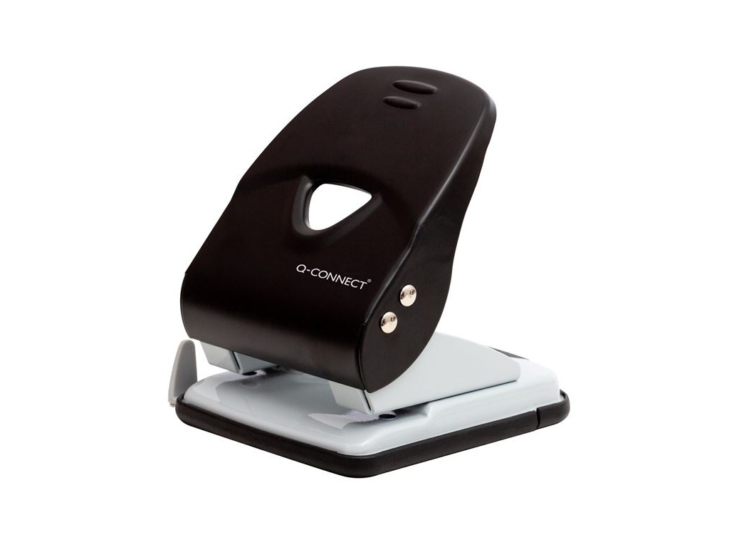 Bytelná děrovačka Q-Connect na dva otvoryDěruje až 40 listů papíru o gramáži 80 g/m2Zajištění rukojeti pro snadné skladováníMěřítko formátu pro přesnostPlastový příložníkKapacita děrování: 40 listů