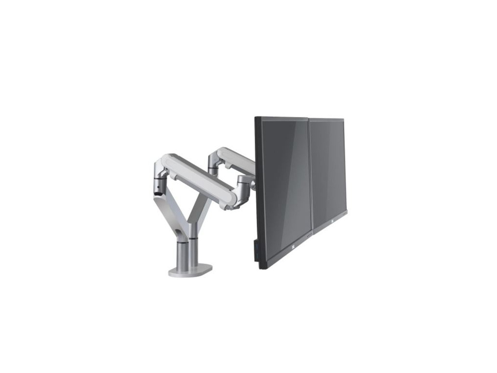 ergonomický držák na dva monitory zvyšují vizuální komfort pro držení těla v pracovním prostoru ulevuje od bolestí zad, krku a snižuje únavu očí jednoduchá instalace na stůl o max. tloušťsce 6,5 cm snadné nastavení polohy a vyvážení, díky integrovanému plynovému pístu promyšlený systém vedení kabelů systém natočení 165° a otáčení o 360° pivot funkce umožňující otočit monitor do polohy orientované na výšku doporučená velikost monitoru do 27" rychlá a snadná montáž VESA uchycení (75/100) maximální nosnost 9 kg/ rameno rozsah natočení ramene 165° rotace obrazovky ±360° výšky nastavitelná od 37 do 50 cm maximální délka ramene po prodloužení 56 cm (délka ramene 35 cm) doporučená tloušťka pracovní desky do 65 mm materiál: hliník, ABS plast barva stříbrně šedá