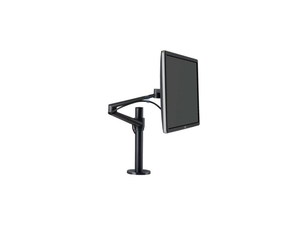 ergonomický držák na jeden monitor zvyšuje vizuální komfort pro držení těla v pracovním prostoru ulevuje od bolestí zad, krku a snižuje únavu očí jednoduchá instalace na stůl o max. tloušťsce 6,5 cm vícesměrné rameno a jednoduché nastavení výšky pomocí křídlového šroubu promyšlený systém vedení kabelů systém natočení o rozsahu 165° a otáčení o 360° pivot funkce umožňující otočit monitor do polohy orientované na výšku doporučená velikost monitoru do 27" rychlá a snadná montáž VESA uchycení (75/100) maximální nosnost 9 kg rozsah natočení ramene 180° rotace obrazovky ±360° výšky nastavitelná od 23 do 50 cm maximální délka po prodloužení 56 cm (dosah ramene 30,5 cm) doporučená tloušťka pracovní desky do 65 mm materiál: hliník barva: černá