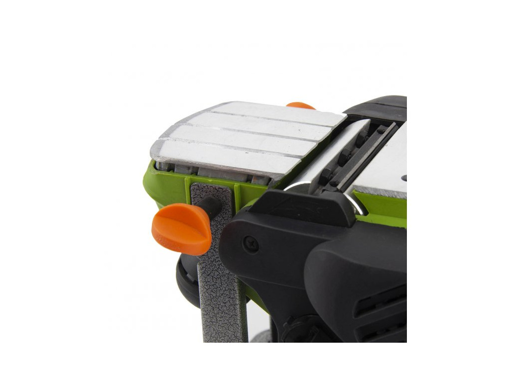 Součástí balení: stojan pro hoblík, vak na hobliny a klíč Odnímatelná základna Příkon (W) 850 Otáčky (min.-1) 16500 Maximální brusná šířka (mm) 82 Maximální brusná hloubka (mm) 3 Hloubka polodrážky (mm) 0-12 Hmotnost (kg) 4