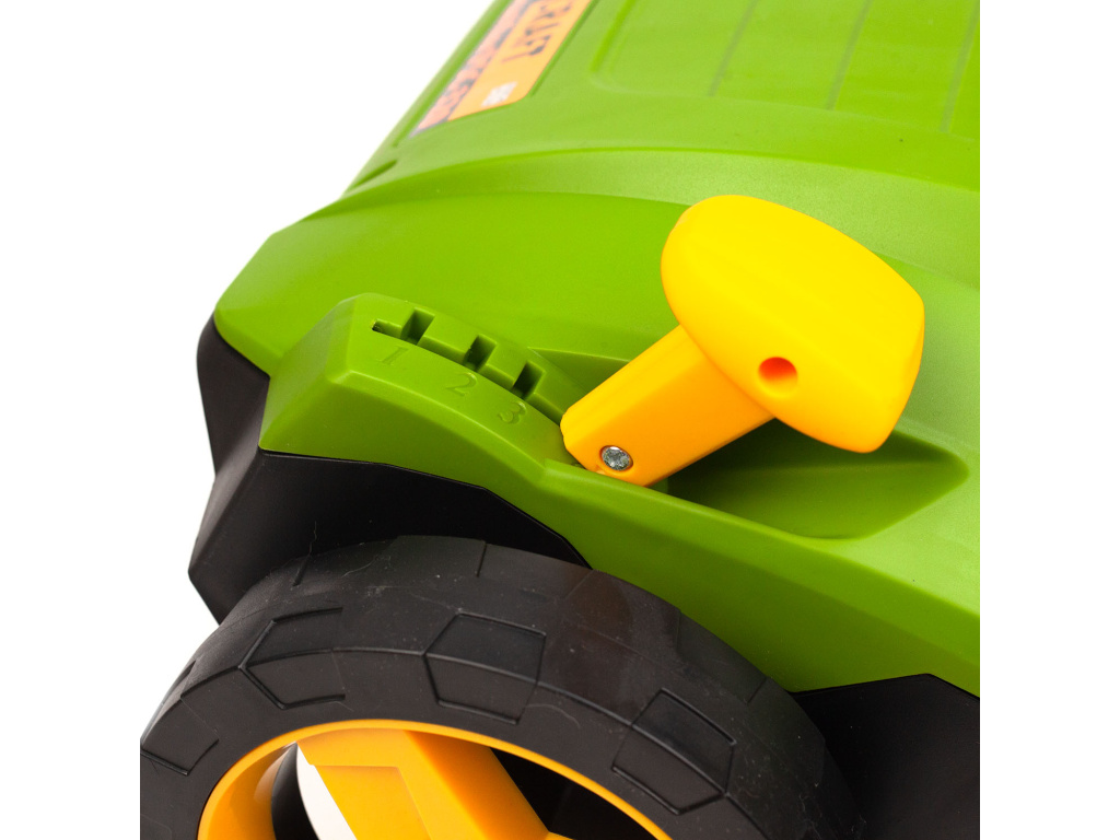 Centrální nastavení výšky (3 polohy): Snadné přizpůsobení hloubky vertikutace podle stavu trávníku.
