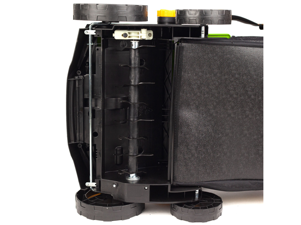 Centrální nastavení výšky ve 4 polohách: Snadné přizpůsobení hloubky zásahu podle aktuálních potřeb trávníku.