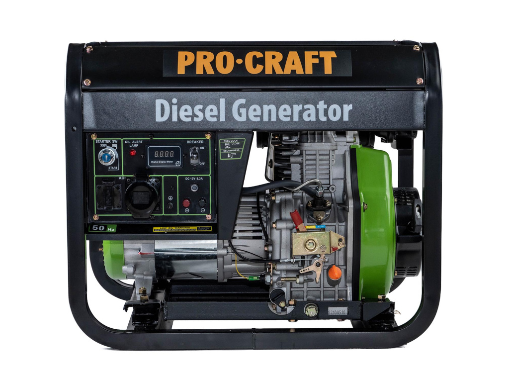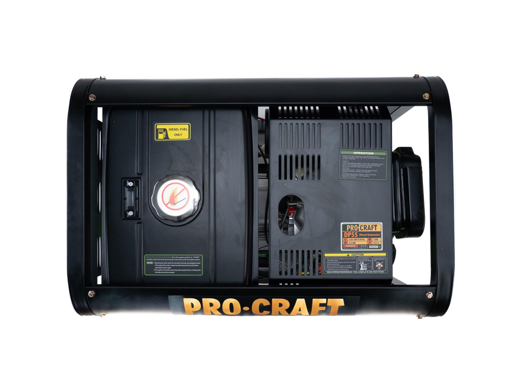 Dieselová elektrocentrála Procraft DP55 je určena k použití jako nezávislý generátor elektrického proudu při výpadcích elektřiny, jako zdroj energie při stavebnictví, v domácnosti, kde není elektrická síť dostupná. Výhodou je nižší spotřeba paliva a dlouhodobější použití než u benzinových elektrocentrál. Díky vysokému výkonu umožňuje napájení nejen domácích spotřebičů, ale i spotřebičů indukčního typu. Elektrocentrála má palivovou nádrž o objemu 12,5 l, čím zaručí dlouhý nepřetržitý provoz. Elektronický start zajišťuje rychlé spuštění benzinového motoru. Robustní ochranný rám umožňuje použití elektrocentrály v jakýkoliv podmínkách a taky usnadňuje transportování. Součástí dodávky je elektrická zástrčka, klíč na svíčku. Balení karton.