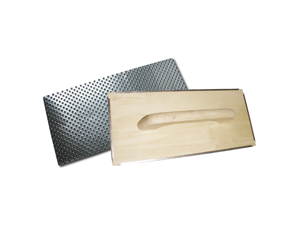 Hladítko s plechovým struhadlem pro broušení polystyrénových fasád.
