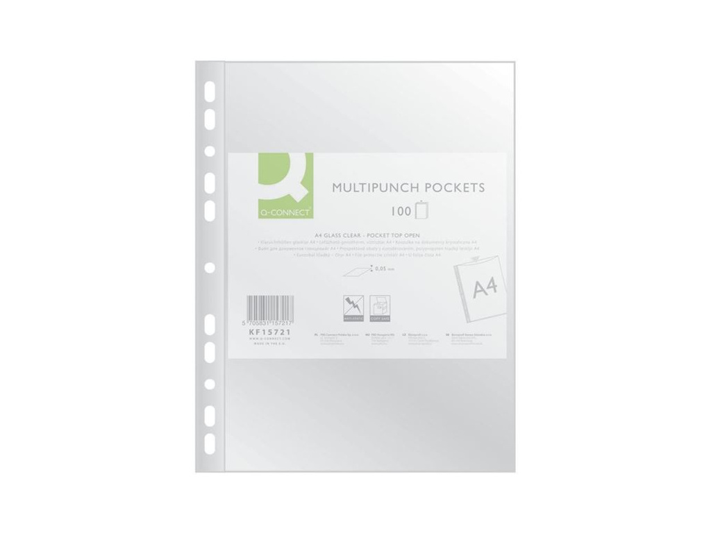 Prospektové závěsné obaly Q-ConnectFormát: A4Tloušťka: 50 mikronůPovrch: lesklýVnější rozměry: 300x233 mmVnitřní rozměry: 300x215 mmBalení: 100 ks