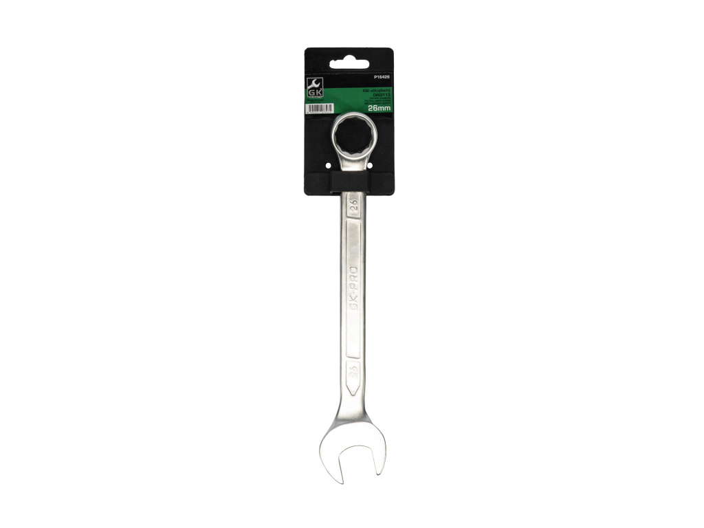 Kombinovaný klíč plochý s otevřenými čelistmi s dvanáctihranným očkem na druhé straně.