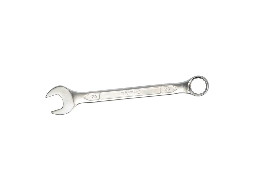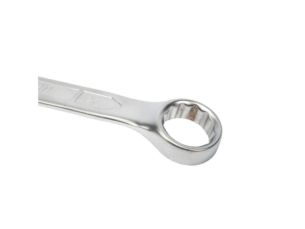 Pevný a odolný klíč z chrom-vanadiové oceli s dvanáctihranným očkem, vyhnutým o 15° pro snazší práci.