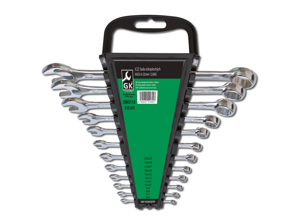 GK TOOLS Sada očkoplochých klíčů, chrom 12 dílů | 6-22 mm, plastový držák