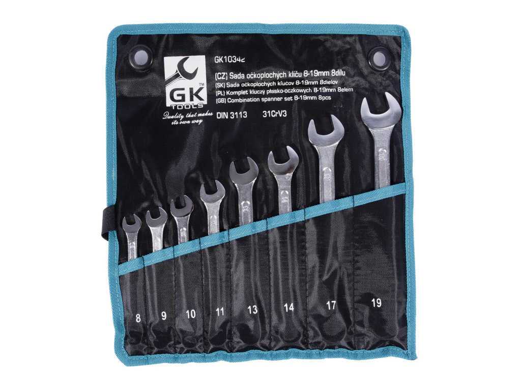 GK TOOLS Sada očkoplochých klíčů, chrom 8 dílů | 6-22 mm, textilní obal