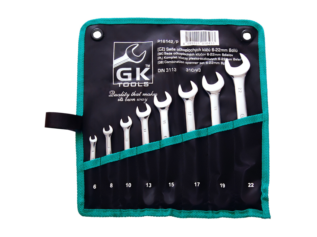 GK TOOLS Sada očkoplochých klíčů, matné | 6-22 mm, 8 dílů, textilní obal