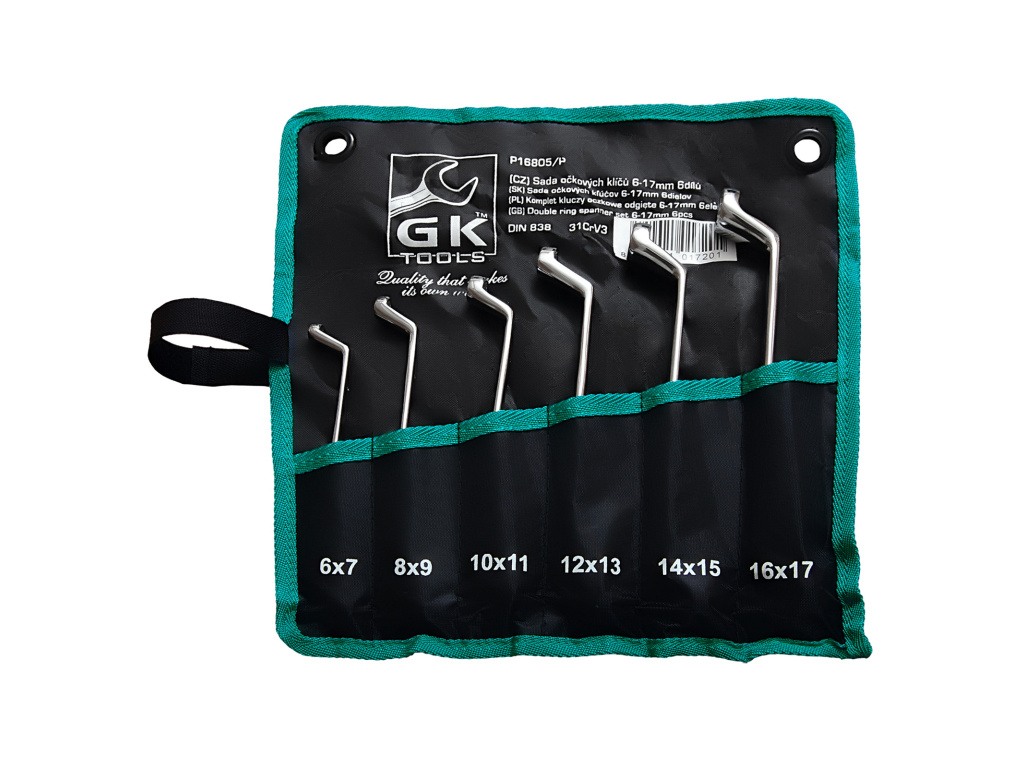 GK TOOLS Sada očkových klíčů vyhnutých chrom 6 dílů | 6-17 mm, textilní obal
