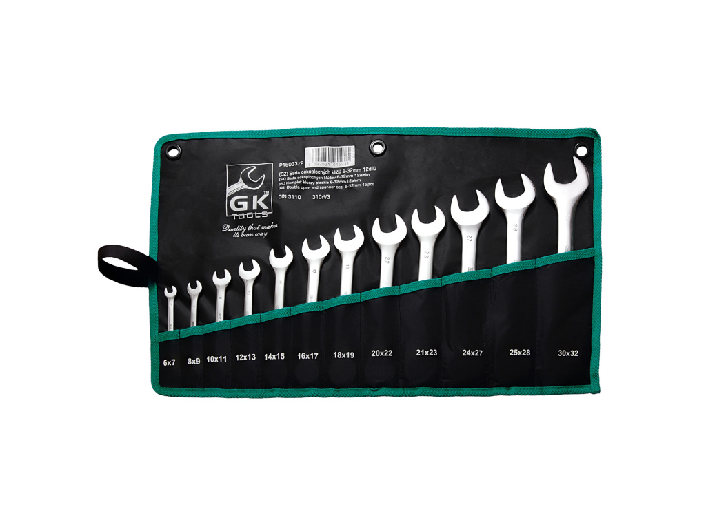 GK TOOLS Sada plochých klíčů, chrom | 6-22 mm, 8 dílů, textilní obal