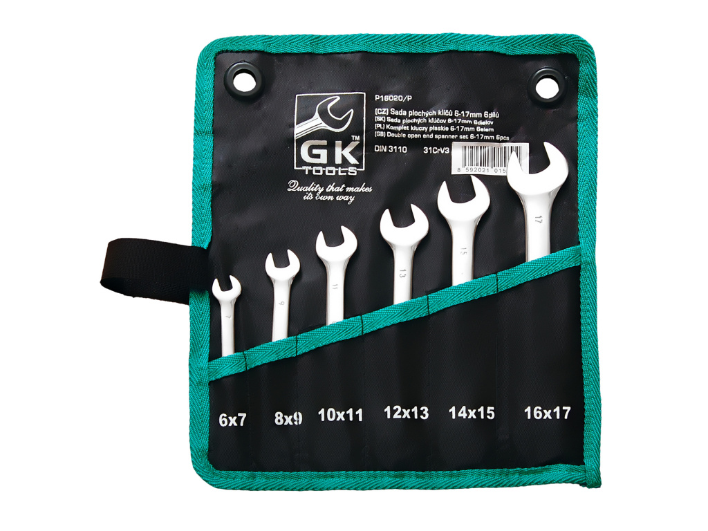 GK TOOLS Sada plochých klíčů, chrom | 6-22 mm, 8 dílů, textilní obal