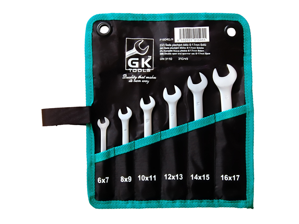 GK TOOLS Sada plochých klíčů, chrom | 6-17 mm, 6 dílů, textilní obal