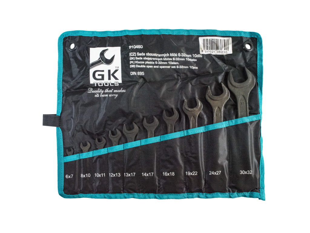 GK TOOLS Sada plochých klíčů 10 dílů | 6-32 mm, textilní obal
