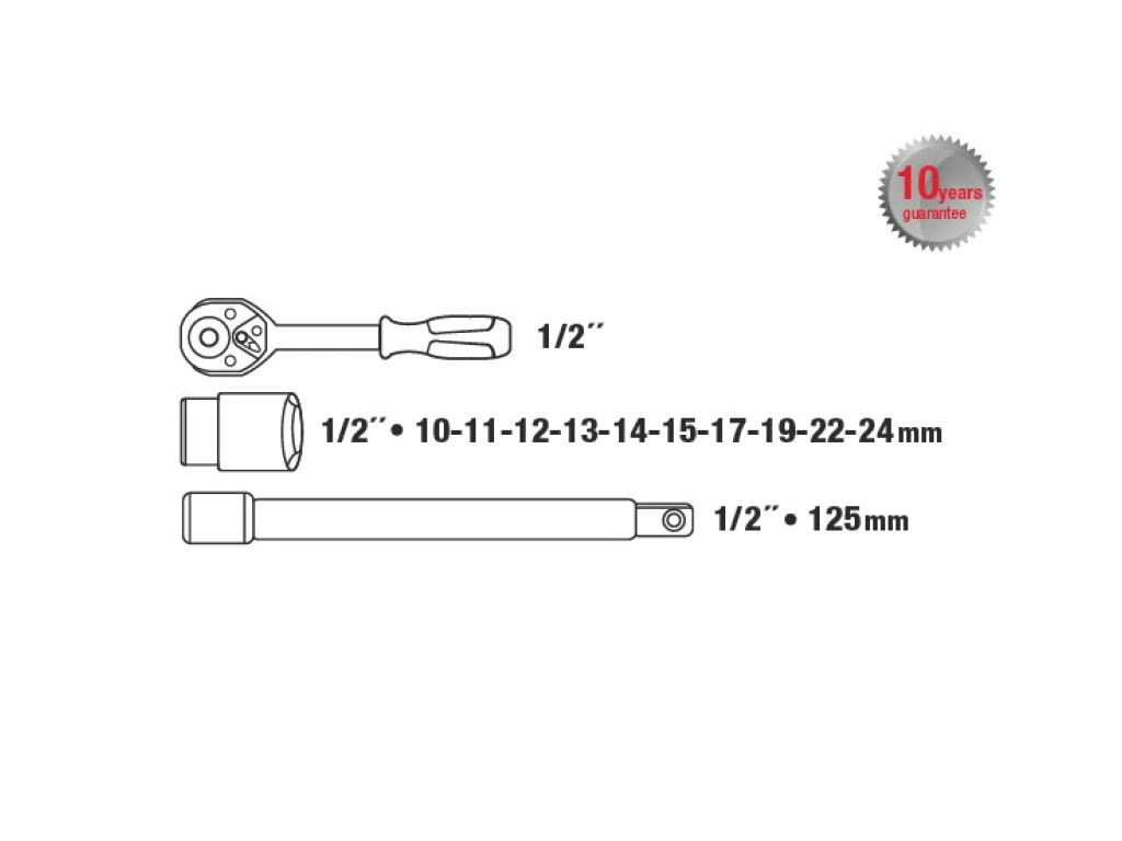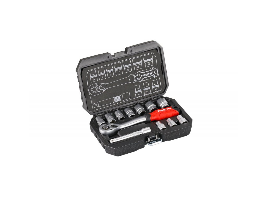 Kvalitní gola sada je vhodná díky kvalitě použitých materiálů a zpracování v profesionální autodílně nebo servisu. 10 let záruka. Všechny části jsou vyrobeny z vysoce kvalitní chrom-vanadiové oceli. Niklová povrchová úprava. Hroty bitů jsou ze slitiny oceli S2. Ráčny mají jemné dělení 72 zubů, tělo ráčny z CrV oceli, zubový mechanismus z S2 oceli, ergonomicky tvarovanou rukojeť se zdravotně nezávadnou gumou. Nový design plastového kufru z primárního materiálu s kovovými uzávěry a panty víka.