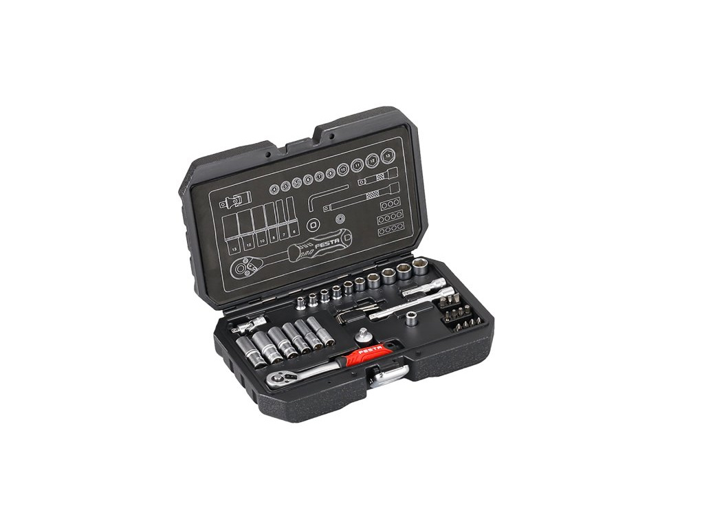 Kvalitní gola sada je vhodná díky kvalitě použitých materiálů a zpracování v profesionální autodílně nebo servisu. 10 let záruka. Všechny části jsou vyrobeny z vysoce kvalitní chrom-vanadiové oceli. Niklová povrchová úprava. Hroty bitů jsou ze slitiny oceli S2. Ráčny mají jemné dělení 72 zubů, tělo ráčny z CrV oceli, zubový mechanismus z S2 oceli, ergonomicky tvarovanou rukojeť se zdravotně nezávadnou gumou. Nový design plastového kufru z primárního materiálu s kovovými uzávěry a panty víka.