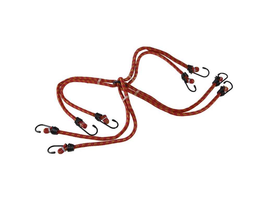 Elastické gumové víceramenné popruhy, opletené polyesterem a zakončené háky z ocelových poplastovaných drátů k uchycování zavazadel.