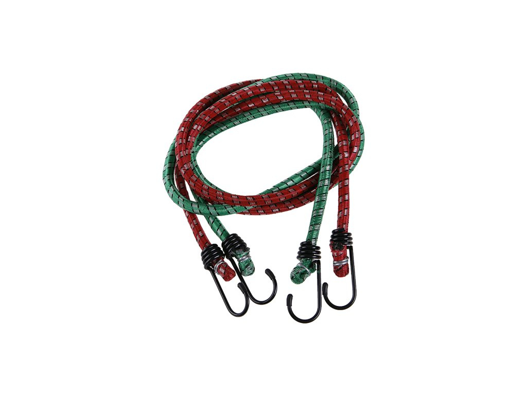Elastické gumové popruhy, opletené polyesterem a zakončené oboustranně háky z ocelových poplastovaných drátů k uchycování zavazadel.