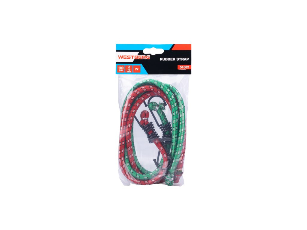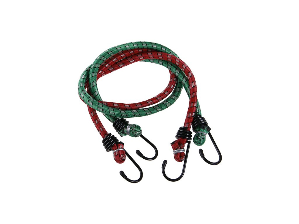 Elastické gumové popruhy, opletené polyesterem a zakončené oboustranně háky z ocelových poplastovaných drátů k uchycování zavazadel.