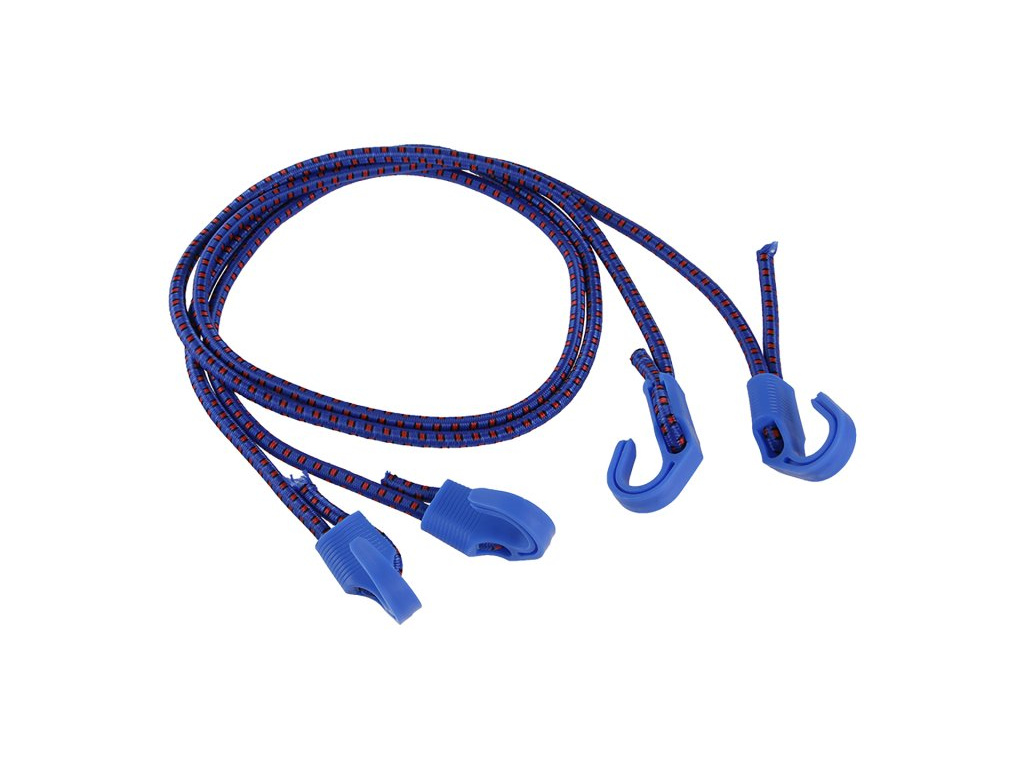 Gumové upínací lano s možností nastavení délky. Plastové háčky na obou koncích. Lano lze nastavit do různých délek podle potřeby. Průměr gumy 8 mm. Maximální délka 120 cm. 2 ks v balení.