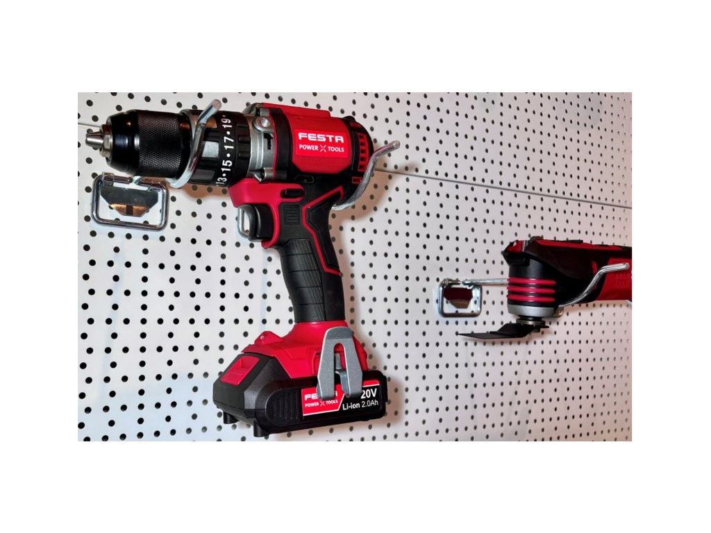 - regálový hák pro zavěšení AKU nebo elektro nářadí