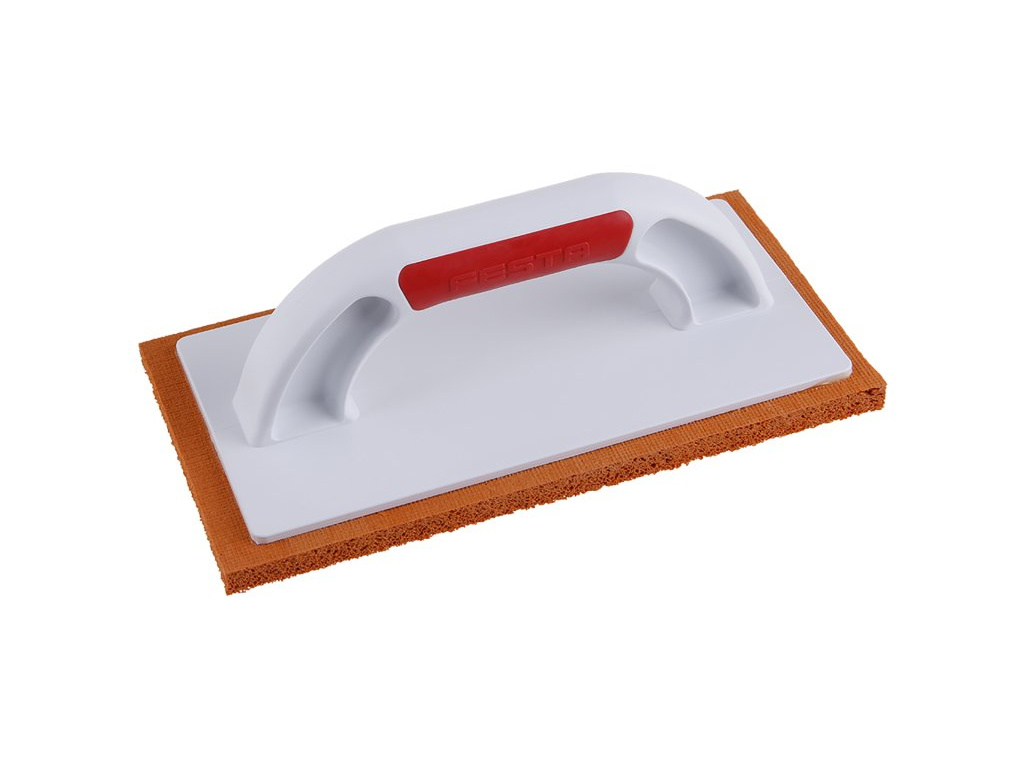 Hladítko FESTA s houbou, rozměr: 250 x 130 x 12 mm, základna z kvalitního plastu s ergonomickou rukojetí, použití: na smytí spárovací hmoty, dočištění jemné omítky, vyhlazení štukových omítek.