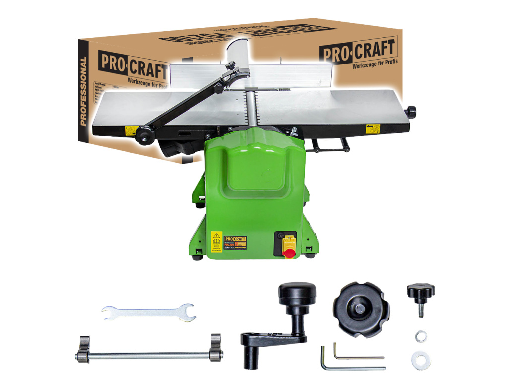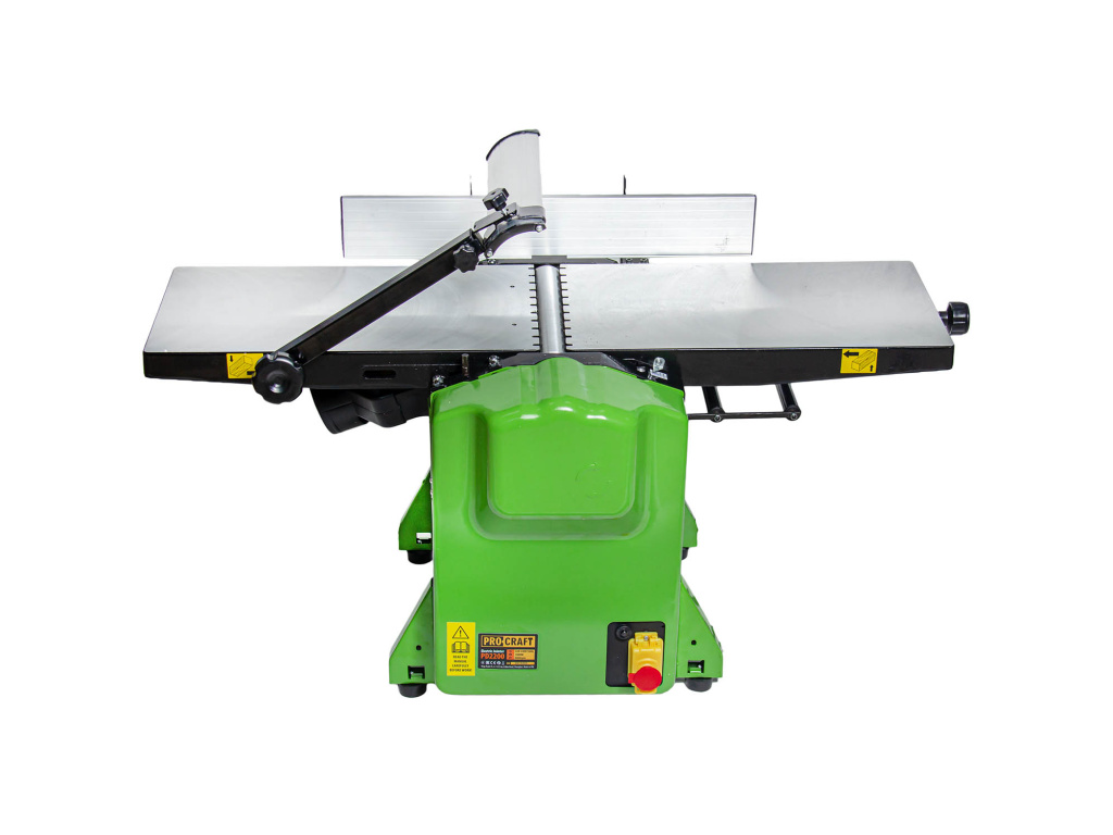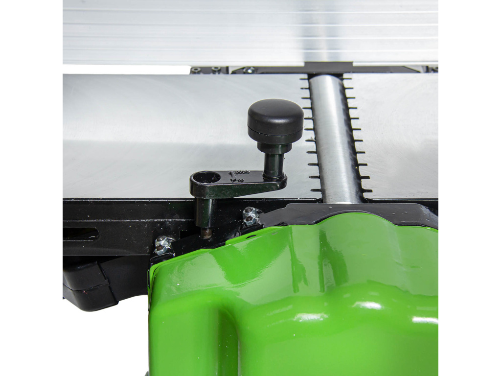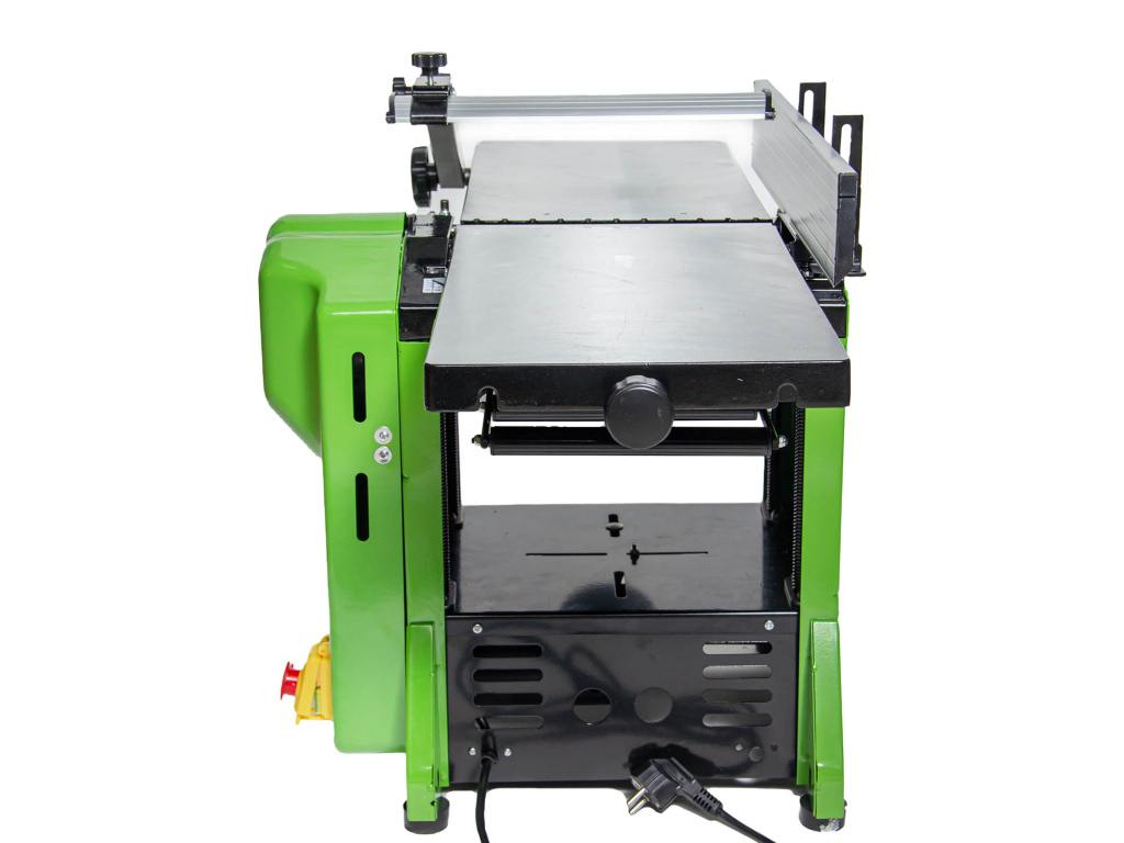 Podpěrné protahovací válce Příkon (W) 1800 Otáčky (min.-1) 8000 Rychlost posuvu (m/min) 6 Max.šířka hoblování (mm) 254 Hloubka hoblování (mm) 0-3 Výška hoblování (mm) 6-210 Počet nožů: 2 Rozměry dorazu (mm) 512X80 Úhel dorazu: 90°-135°