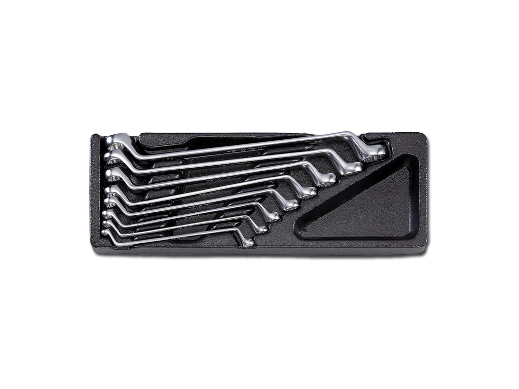 HA021-1: | Sada očkových zahnutých klíčů 5 dílů - matné, plastové plato |