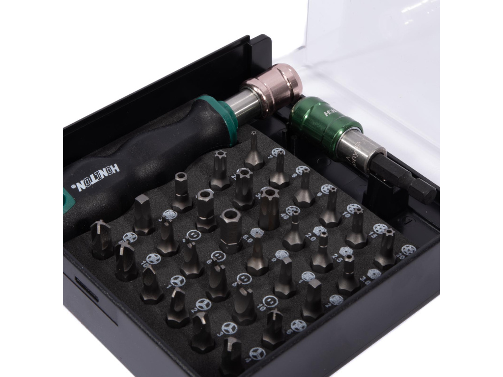 | Bity 1/4": | TRX s otvorem: T7, T8, T9, T10, T15, T20, T25, T30, T40; IMBUS s otvorem: 2, 2.5, 3, 4, 5, 6 mm; Čtyřhran: 0, 1, 2, 3; Spanner: 4, 6, 8, 10; TORQ: T6, T8, T10; Tri-Wing: 1, 2, 3, 4 |