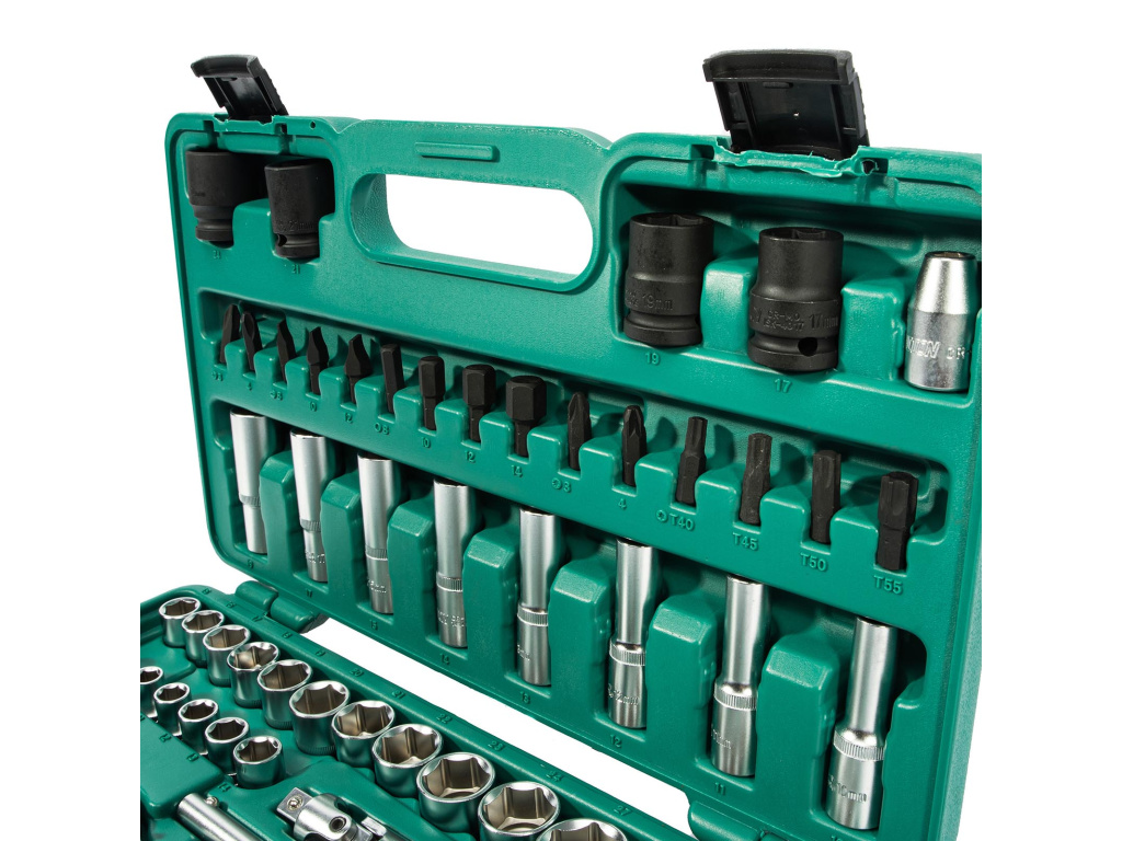 Hlavice nástrčné 1/2": | 8, 9, 10, 11, 12, 13, 14, 15, 16, 17, 18, 19, 20, 21, 22, 24, 27, 30, 32 mm; E10, E11, E12, E14, E15, E17, E19; 77 mm: 10, 11, 12, 13, 14, 15, 17, 19 mm |
