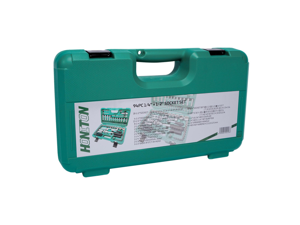 Nejprodávanější sada hlavic HONITON, která by neměla chybět v žádné dílně. Její kompletní složení hlavic 1/4" a 1/2", bitů a nástavců z ní dělá nenahraditelného pomocníka. Všechny části jsou vyrobeny z houževnaté CrV oceli, která je certifikovaná strojírenským zkušebním ústavem. Disponuje velmi dobře vybaveným příslušenstvím v betelném kufru. V kufru najdete nejpoužívanější hlavice 1/2" a 1/4". Nářadí je vyrobeno z chrom-vanadiové oceli. Vylepšením sady hlavic jsou kovové rychloupínací přezky.