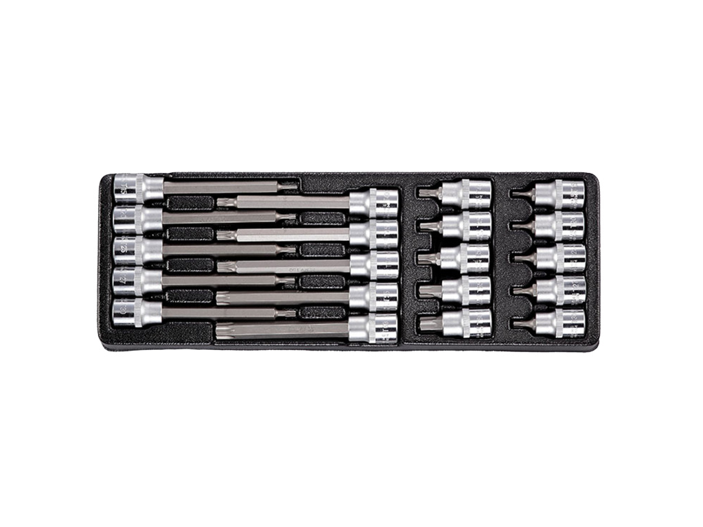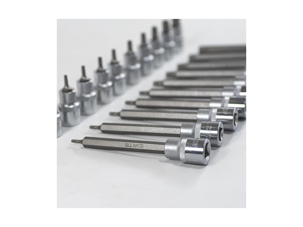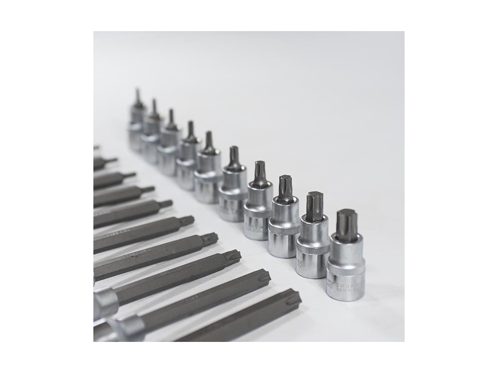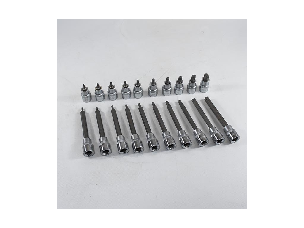 Hlavice zástrčné 1/2": | 55 mm: T15, T20, T25, T27, T30, T40, T45, T50, T55, T60,; 140 mm: T15, T20, T25, T27, T30, T40, T45, T50, T55, T60 |