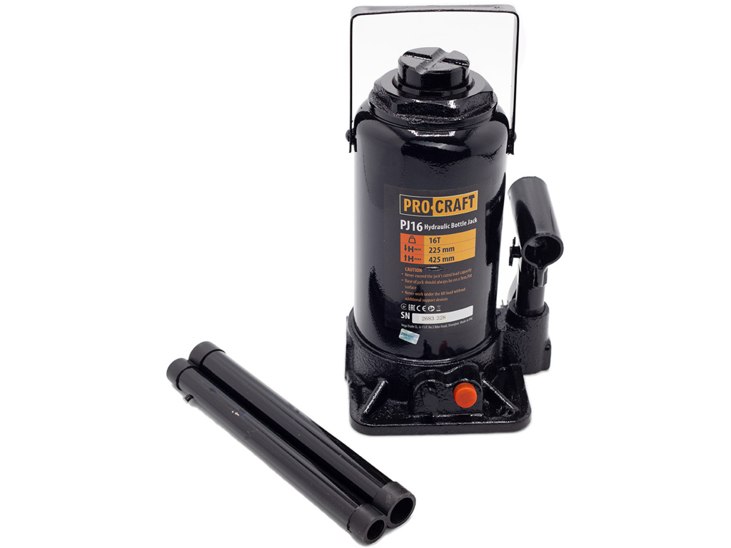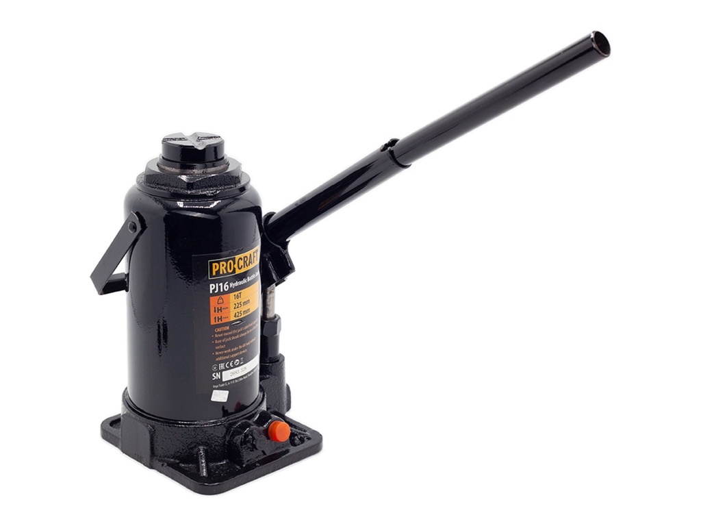 Hydraulický zvedák Procraft PJ16 je určen k zdvihání automobilů, ve stavebnictví a průmyslu. Konstrukce je z kvalitní litiny, vybavena bezpečnostním ventilem. Zvedák má zdvihací kapacitu 16 tun a zdvihový rozsah od 225 mm do 425 mm a vybaven šroubovací patkou. Pohodlné zdvihání a plynulé spouštění břemen usnadňují práci. Součástí dodávky je tyč. Balení karton.