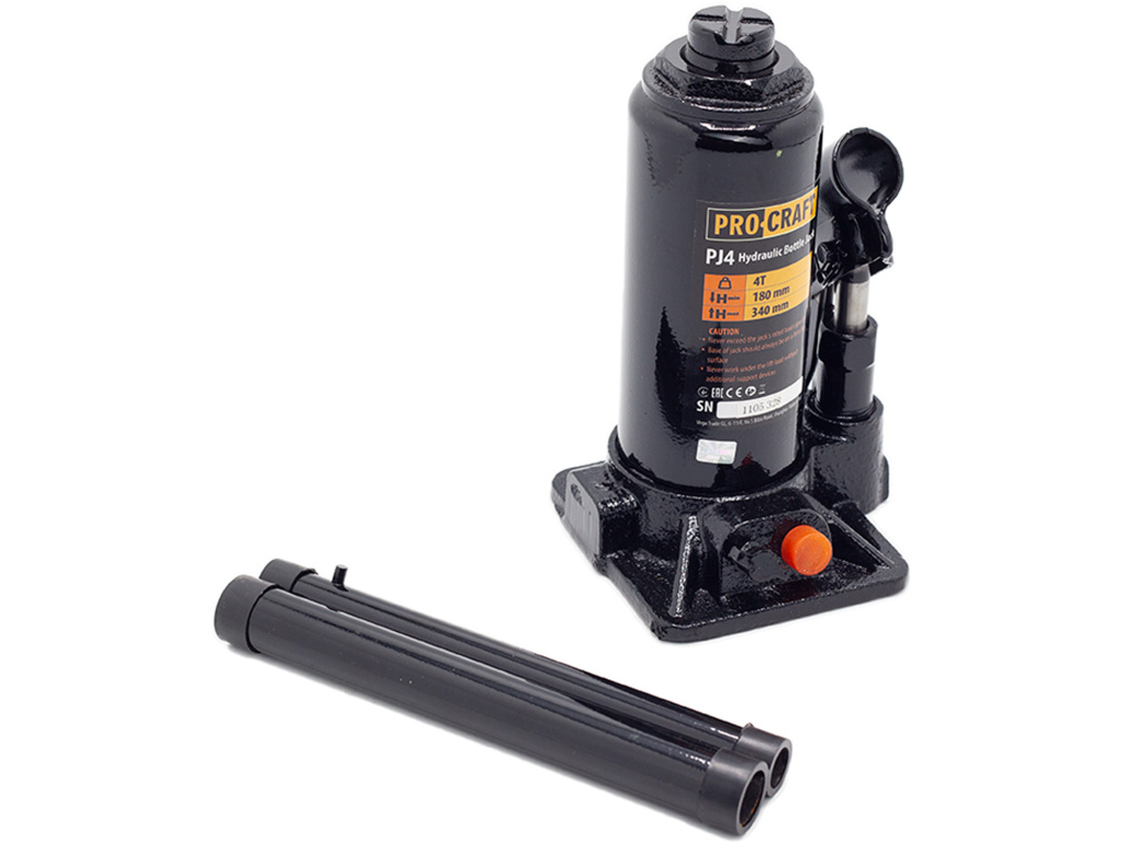 Hydraulický zvedák Procraft PJ4 je určen k zdvihání automobilů, ve stavebnictví a průmyslu. Konstrukce je z kvalitní litiny, vybavena bezpečnostním ventilem. Zvedák má zdvihací kapacitu 4 tuny a zdvihový rozsah od 180 mm do 340 mm a zdvihový rozsah od 148 mm do 278 mm a vybaven šroubovací patkou. Pohodlné zdvihání a plynulé spouštění břemen usnadňují práci. Součástí dodávky je tyč. Balení karton.