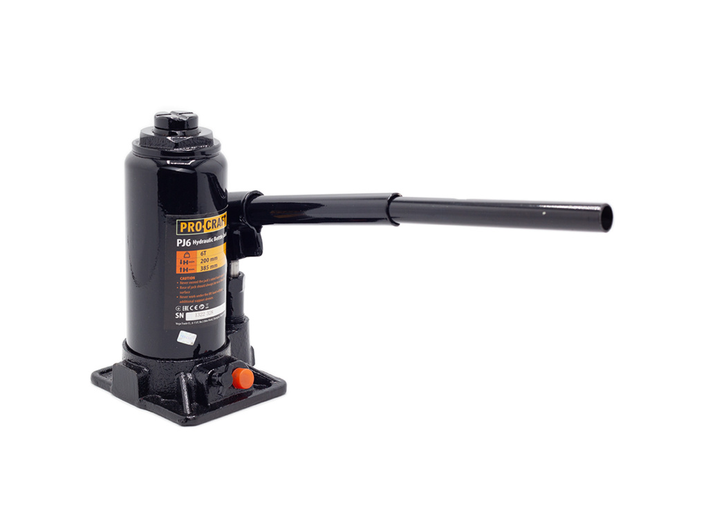 Hydraulický zvedák Procraft PJ6 je určen k zdvihání automobilů, ve stavebnictví a průmyslu. Konstrukce je z kvalitní litiny, vybavena bezpečnostním ventilem. Zvedák má zdvihací kapacitu 6 tun a zdvihový rozsah od 200 mm do 385 mm a vybaven šroubovací patkou. Pohodlné zdvihání a plynulé spouštění břemen usnadňují práci. Součástí dodávky je tyč. Balení karton.